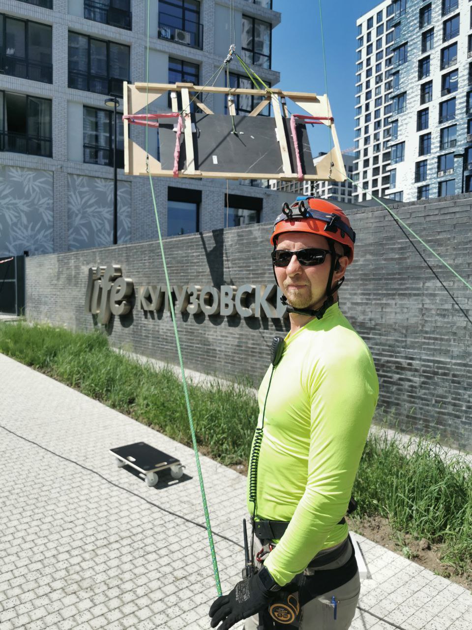 Команда промышленных альпинистов К5 успешно выполнила комплекс работ по подъёму и перемещению плит керамогранита для интерьерных решений в жилом комплексе «Кутузовский».